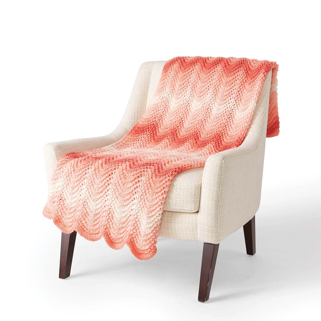 Gentle waves of color flow through the rows of this beautiful blanket. Kit includes Caron Jumbo Ombré yarn and easy knit instructions. 50 × 59″ (127 x 150cm). Imported.