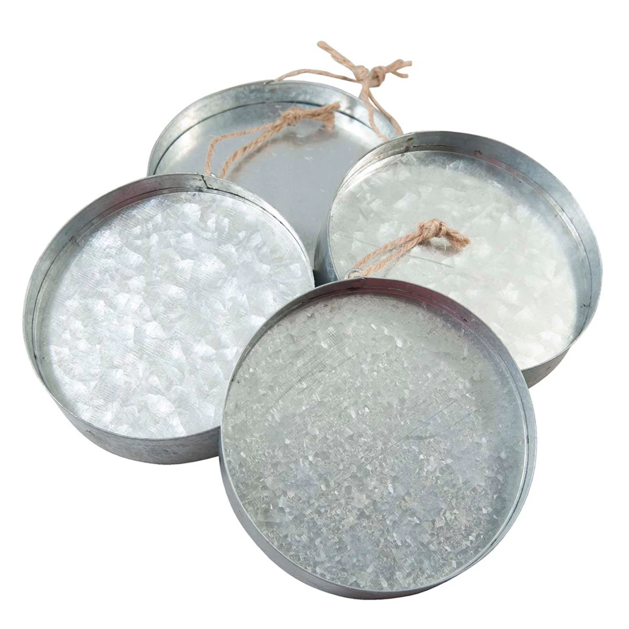 These farmhouse-style metal ornament frames will show off your stitching or other small artwork. Set of four. 4 x 4 x 1″ (10.2 x 10.2 x 2cm).