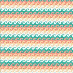 • Fabric prints vary but could feature beach- and travel-themed prints with surfboards, beach huts, vintage vans, beach chairs, umbrellas, geometric prints, bicycles, and geometric prints in shades of teal and coral.
