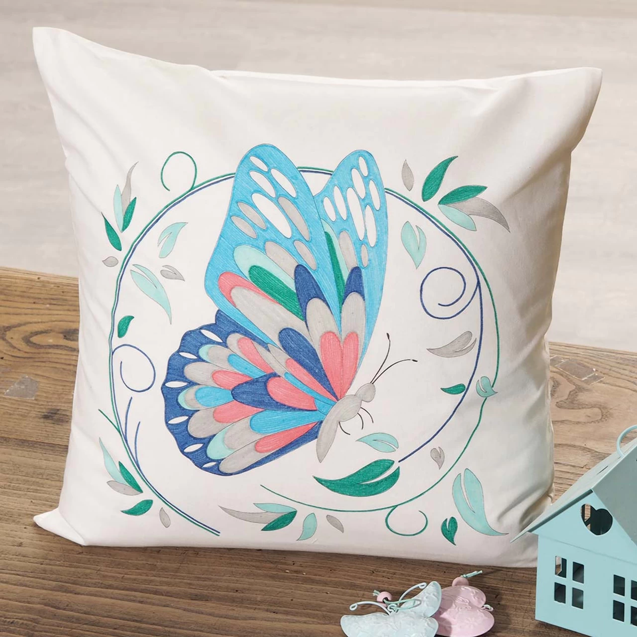 Let your creativity take flight with this beautiful butterfly pillow that’s ready for you to paint and display. Stamped for painting on ivory pre-finished pillow cover with a zippered backing. 16 x 16″ (41 x 41cm). Imported.