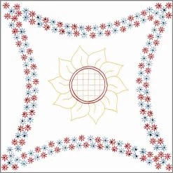 • Quilt blocks are stamped for embroidery on white polyester/cotton fabric. Snowflakes are stamped with permanent ink on red cotton/polyester fabric.