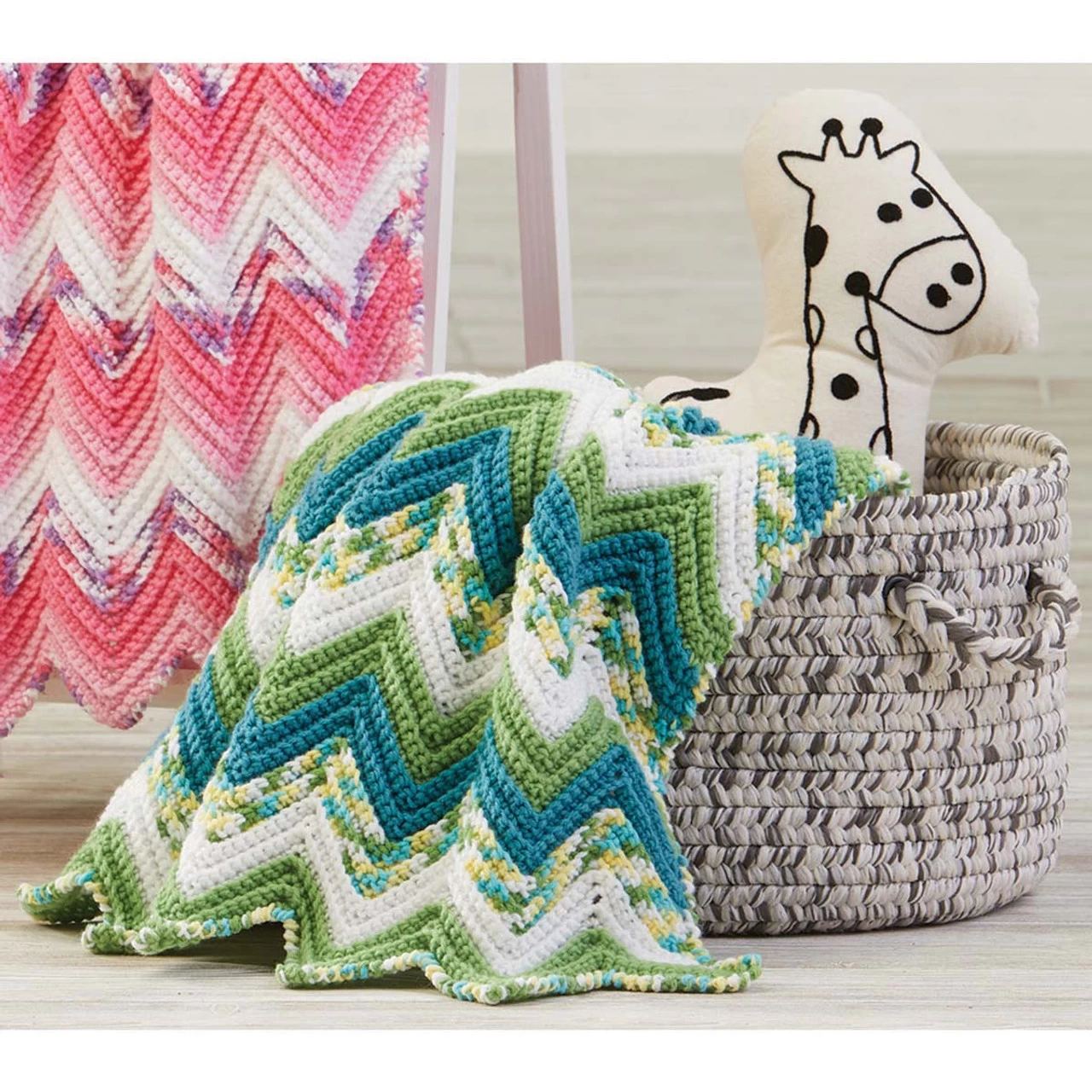 Rock your little one to sleep snuggled up in waves of colorful ripples. Kits include Herrschners Worsted 8 Baby Yarn and easy crochet instructions. 34 × 40″ (112 x 102cm). Imported.