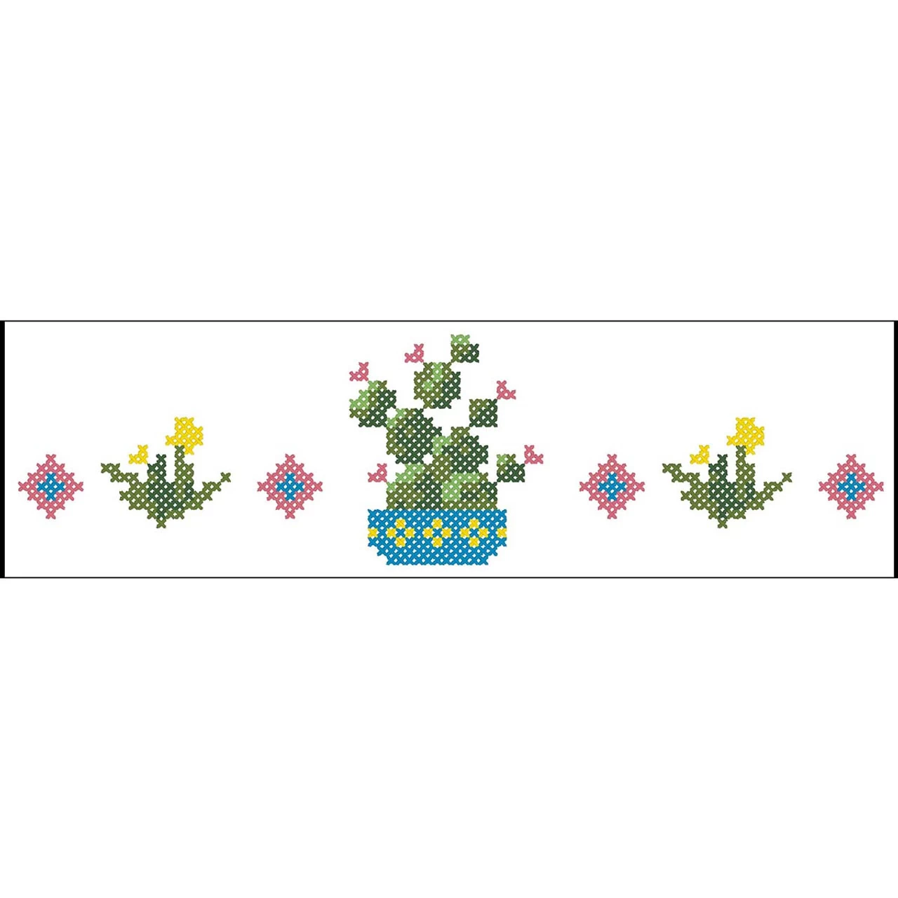 These vibrant cross-stitch pillowcases feature a potted cactus with pink and blue diamonds and yellow flowers on each side in a trendy design for anyone who loves houseplants. The design is stamped for cross-stitch on white cotton/polyester pillowcases with a hemmed edge. There are 2 pillowcases in the set, and each pillowcase is pre-finished and ready for stitching. Simply follow the easy-to-read chart and instructions to stitch the pillowcases. Floss and needle are not included. Each pillowcase is standard/queen size measuring 20 x 30″ (51 x 76cm). Imported.