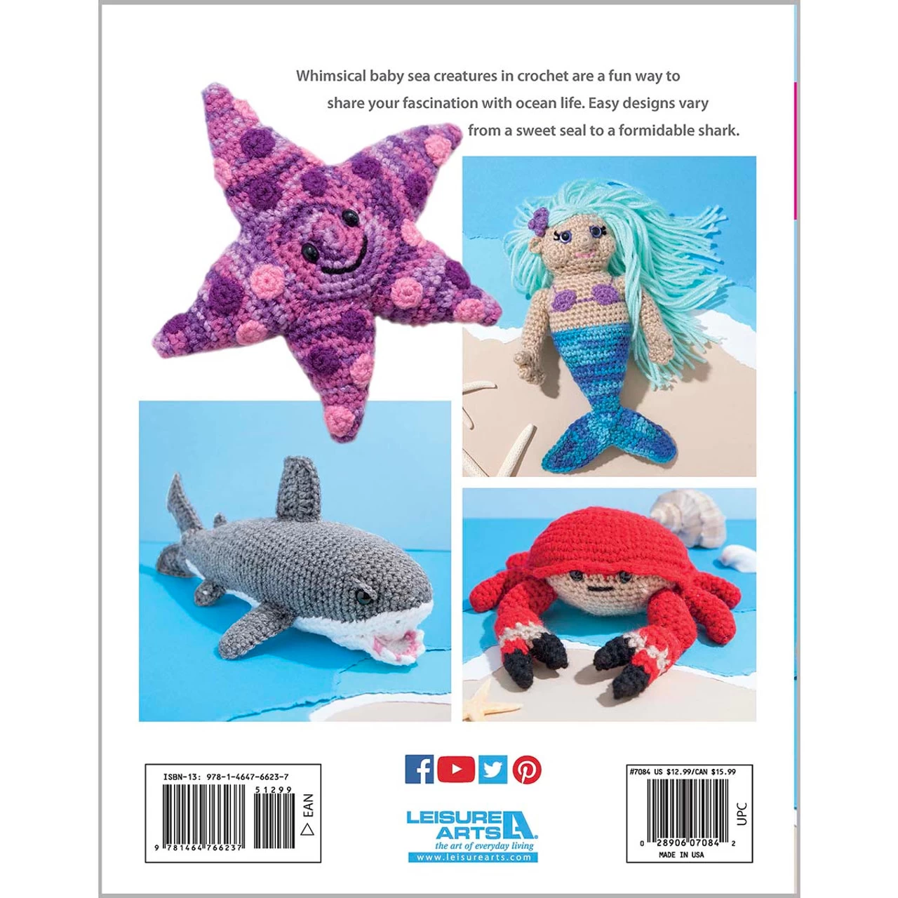 • Crochet patterns include crab, seahorse, octopus, puffer fish, mermaid, seal, shark, starfish, and whale.