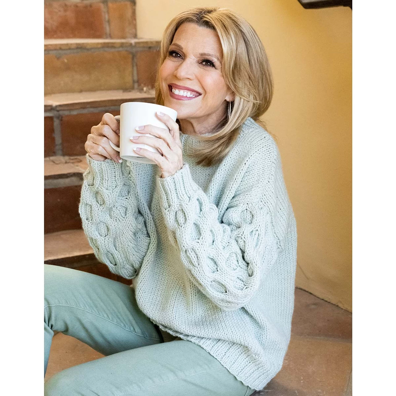 Honeycomb texture transforms a basic pullover into boutique fashion. The body of this easy knit sweater is worked in Stockinette stitch for a classic sweater look, but the sleeves take this design to the next level with a series of cable stitches that create a deep honeycomb pattern in Lion Brand Vanna’s Choice yarn. The kit includes the yarn and easy knit instructions. Available in sizes Small/Medium through 4X/5X, this easy knit sweater requires US size 7 (4.5mm) 16″ and 29″ circular needles and US size 9 (5.5mm) 29″ circular needle to complete (not included). Imported.