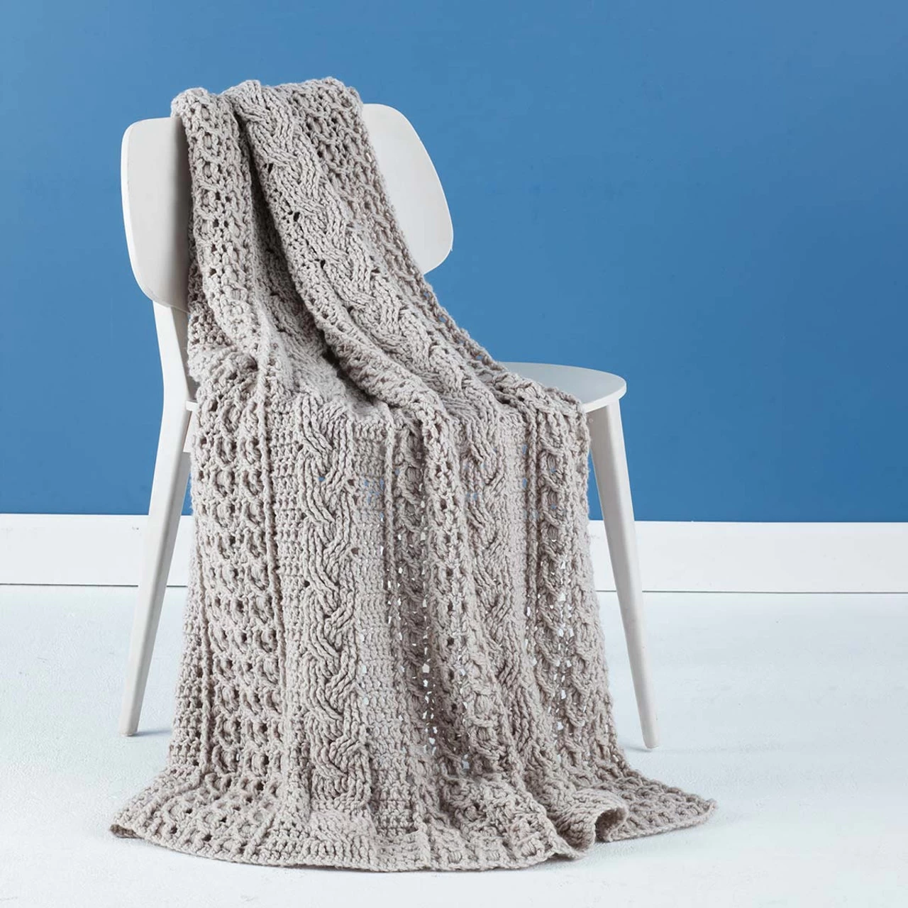 Showcase your stitching talents with intricate crochet cables in this stunning afghan stitched in Lion Brand Vanna’s Choice yarn. This experienced crochet afghan is available in multiple colors, allowing you to customize your masterpiece to match your décor. This afghan kit includes the yarn and experienced crochet instructions. This 48 x 60″ (122 x 152cm) design requires a US size M-13 (9mm) hook to complete (not included). Imported.