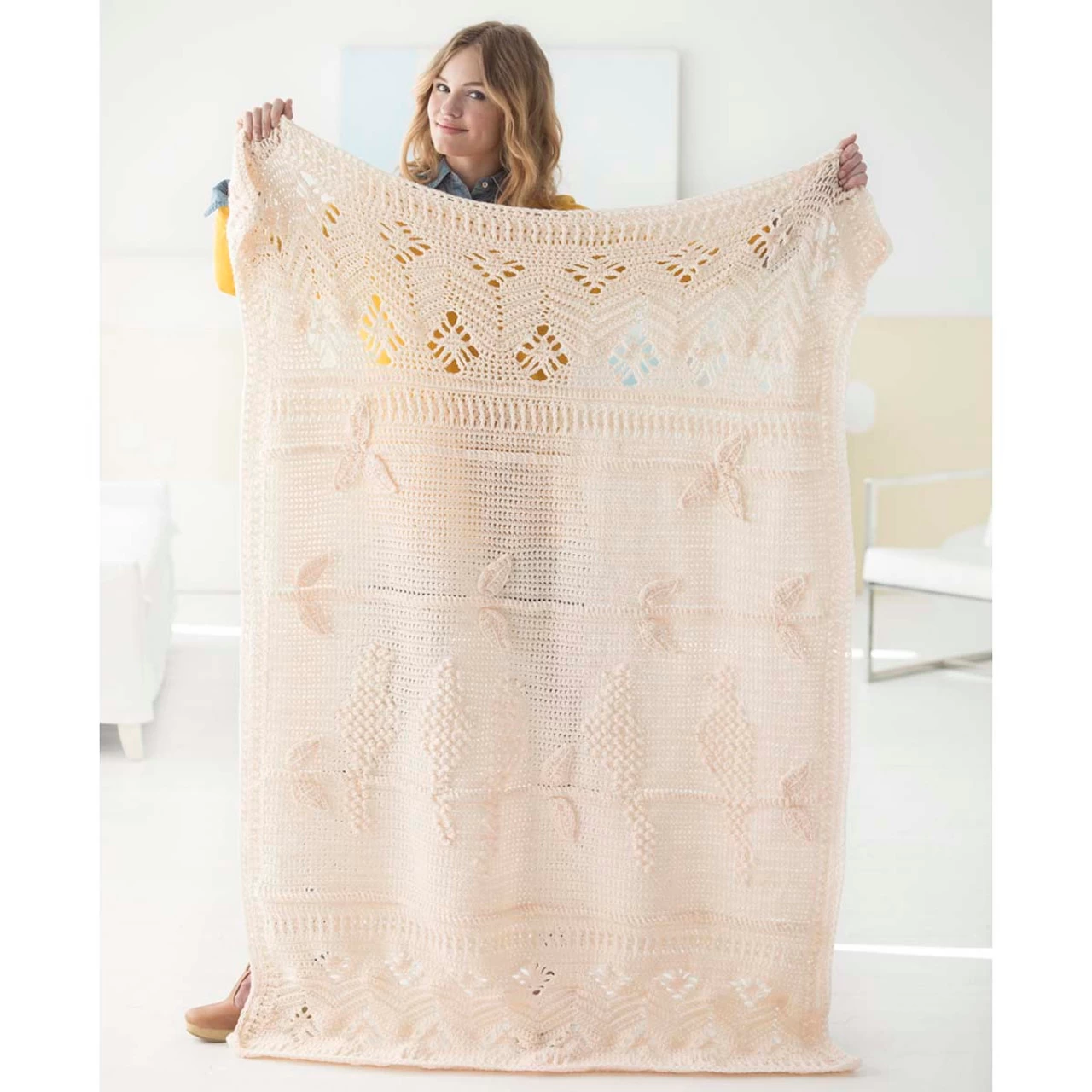 Embossed birds and lacy blooms are a delightful sign of spring on this chic design. Kit includes Lion Brand Vanna’s Choice yarn and intermediate crochet instructions. 44 × 58″ (112 x 147cm). Imported.