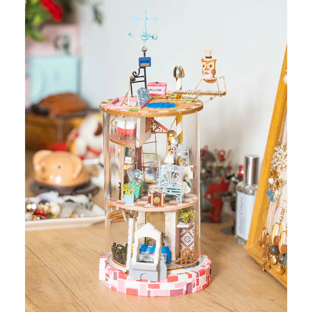This whimsical dollhouse inspires hours of imaginative, model-making fun. Model kit contains all pieces including glass dome and lights for an attractive light display. For ages 8+. 4¾ x 5½ x 11″ (12.1 x 14.1 x 28cm).