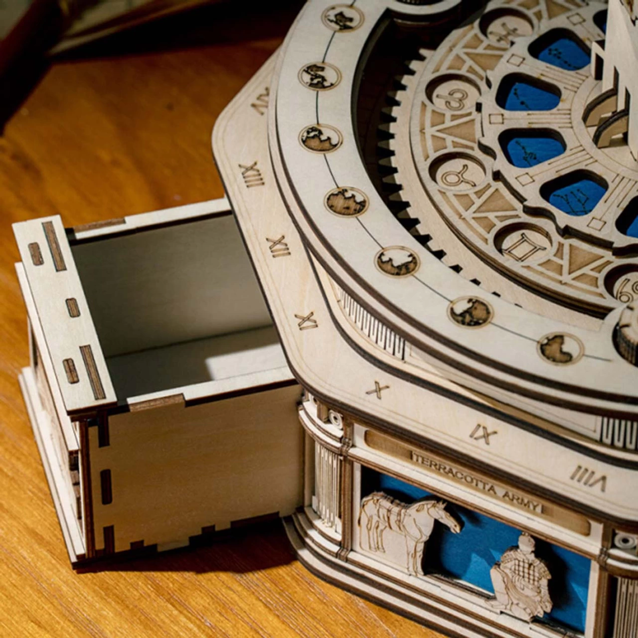 Travel the world as you complete this classically styled 3-D globe model. The finished piece can really rotate and a hidden drawer needs you to decipher how to unlock it. For ages 8+. Includes all pieces and instructions to create model as shown. 13 x 21″ (33 x 53cm).