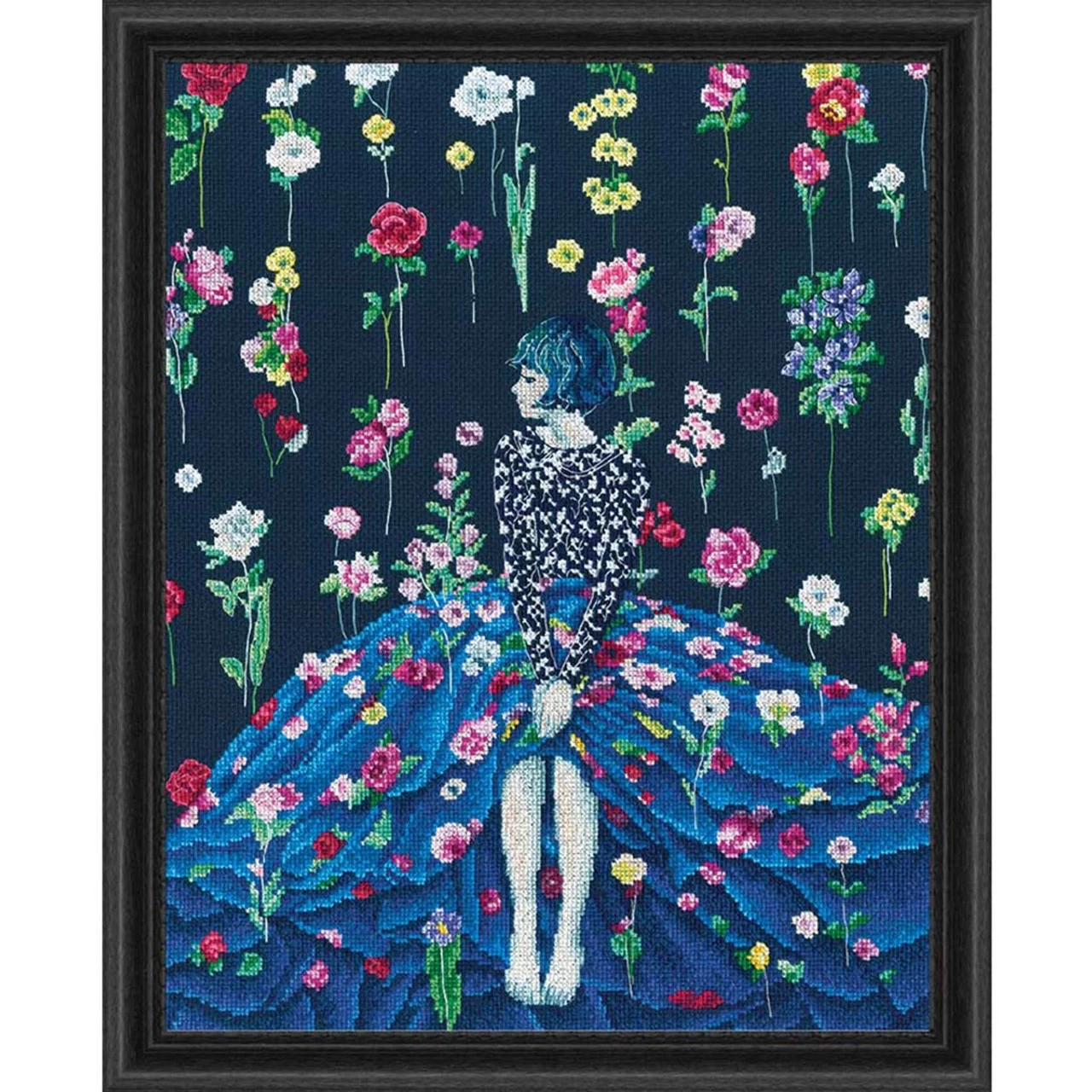 A rainbow of blossoming raindrops enliven the blue hues of this artistic counted cross-stitch masterpiece. Kit includes navy 14-ct. aida fabric, cotton floss, and needle. 13 x 16″ (33 x 41cm). Imported from Europe.