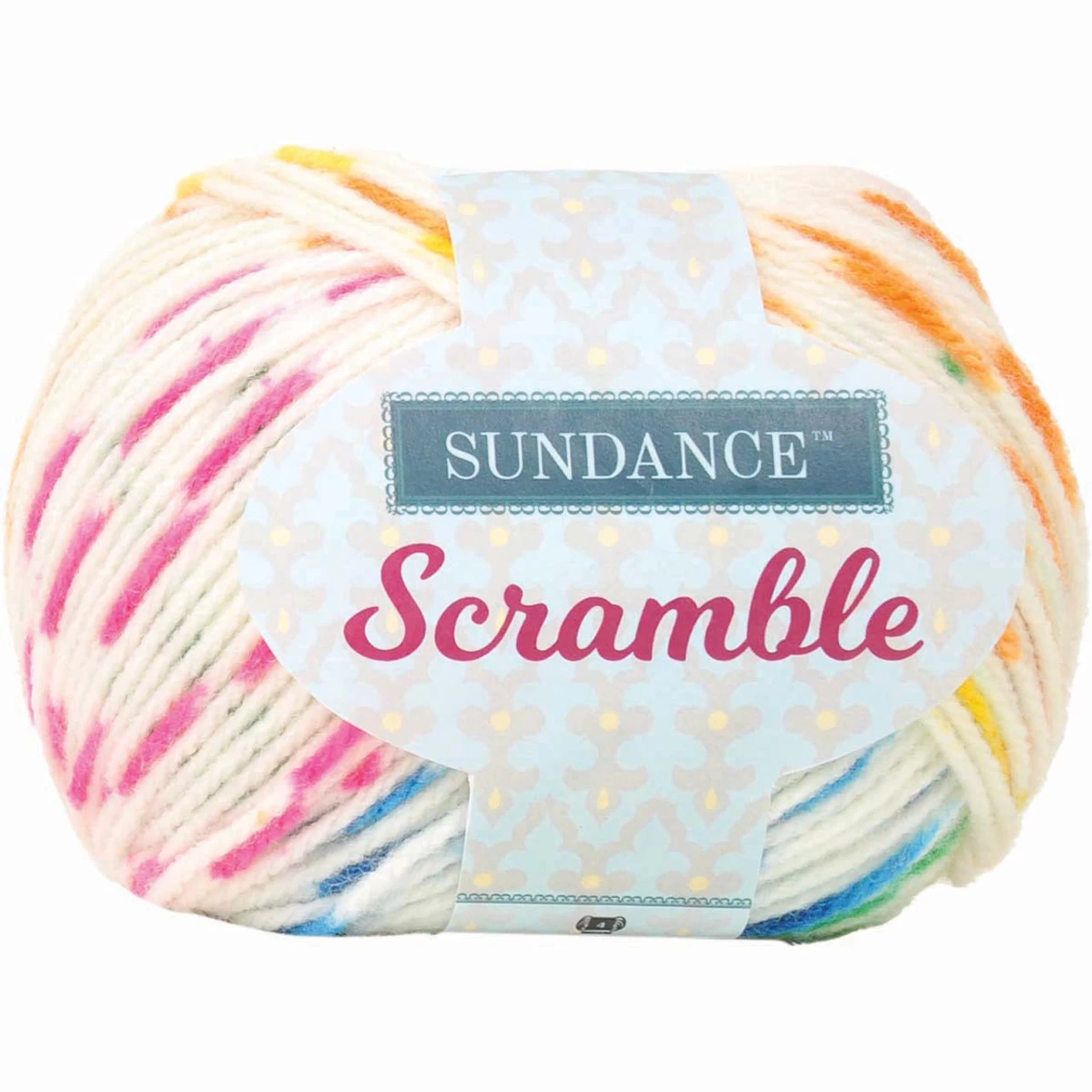 Sundance Scramble yarn is an all-purpose acrylic yarn with dots of color that create playful patterns